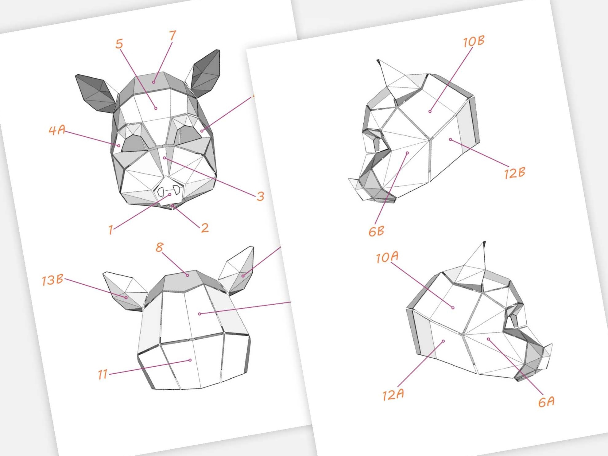 Pig Girl Mask PDF Template Polygonal Mask LACRAFTA