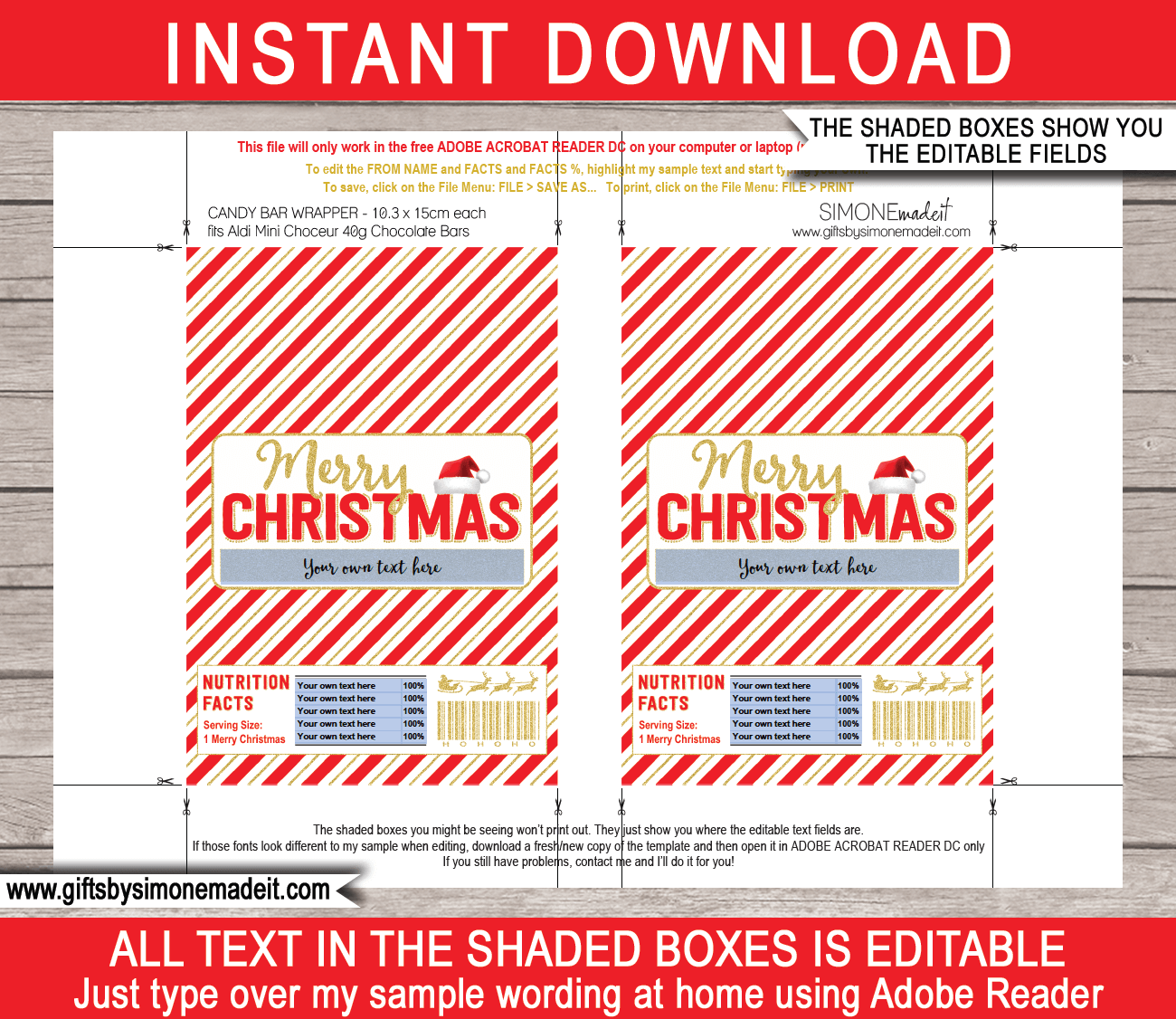 Christmas Chocolate Bar Wrappers Mini Choceur Red U0026 Gold