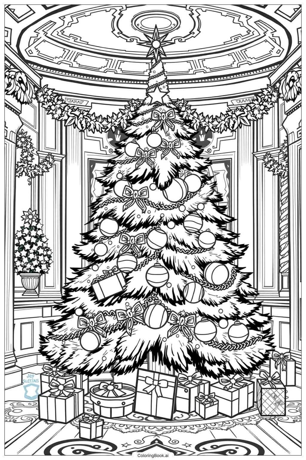 Royal Christmas Tree Palace Coloring Page Free PDFu0026PNG Printable