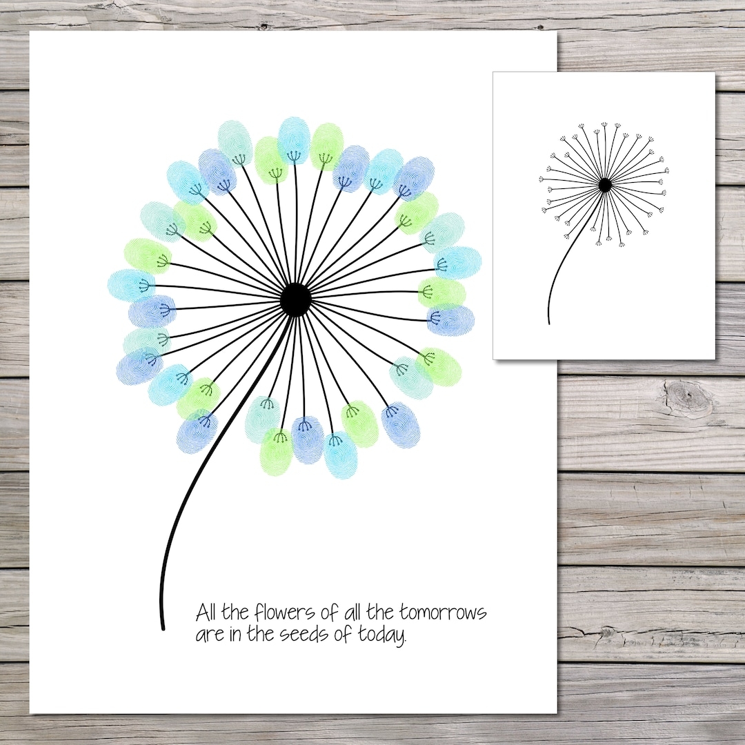 Dandelion Fingerprint Art Fingerprint Craft Dandelion Kids Craft Fingerprint Printable Fingerprint Craft Dandelion Fingerprint Craft Etsy