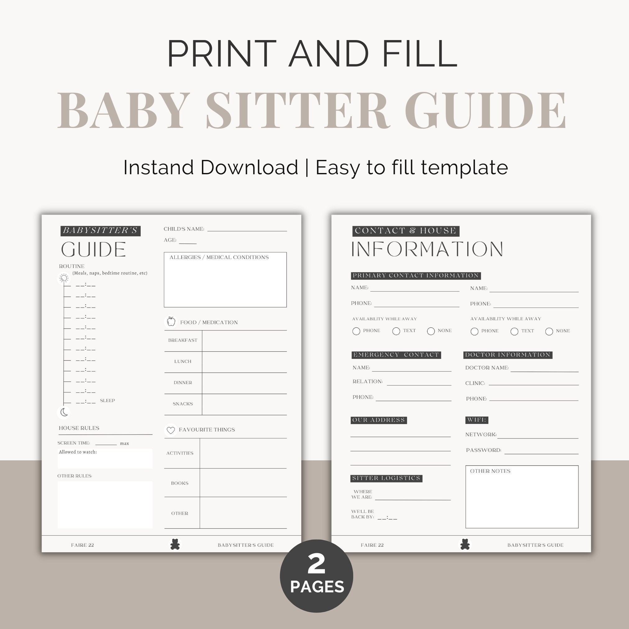 Babysitter Instructions Printable Baby Sitter Template Nanny Notes Etsy Australia