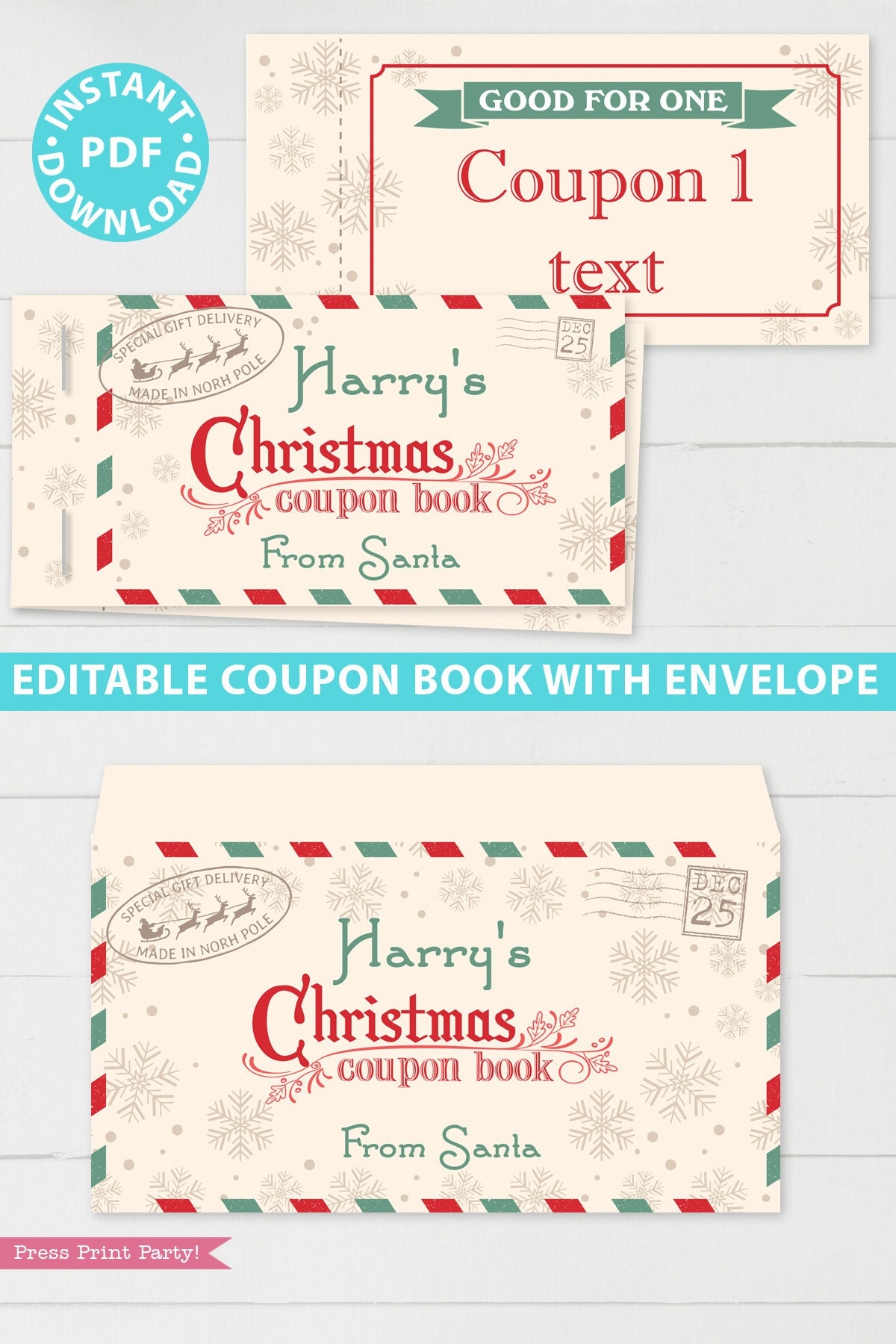 Christmas Coupon Book U0026 Envelope Elf From Santa Red U0026 Green