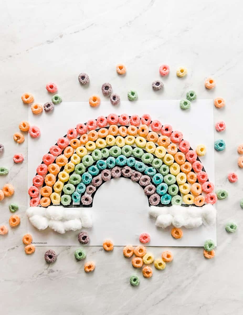 To get started, simply download and print out our free Fruit Loop Rainbow template. All you need are some Fruit Loops cereal, glue, and a printer. Then, let your kids get creative and have fun arranging the colorful cereal into a beautiful rainbow shape on the template.