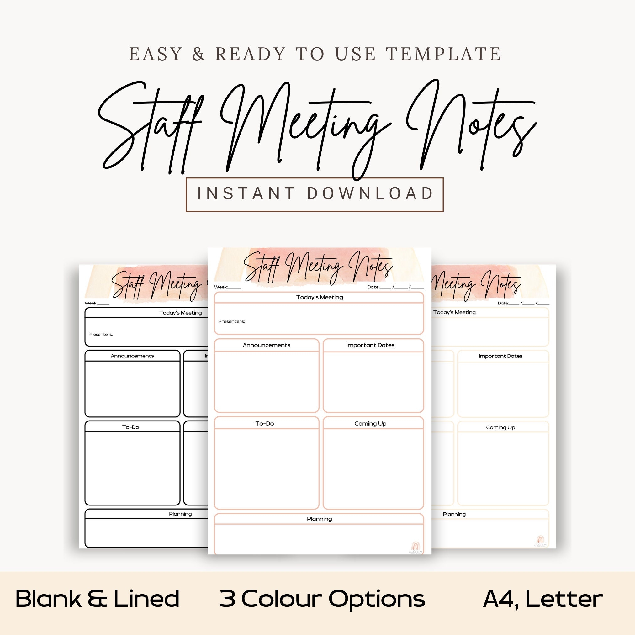 Teacher Meeting Notes Staff Meeting Notes Meeting Notes To Do Digital Printable U0026 Editable Simple Teacher Notes Notes Etsy