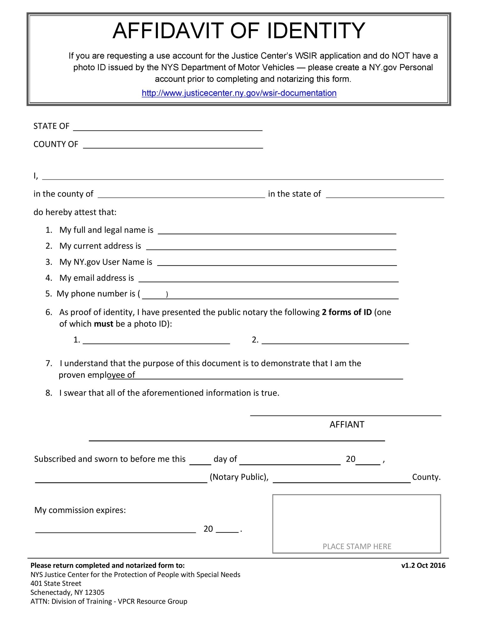 Free Printable Affidavit Of Identity