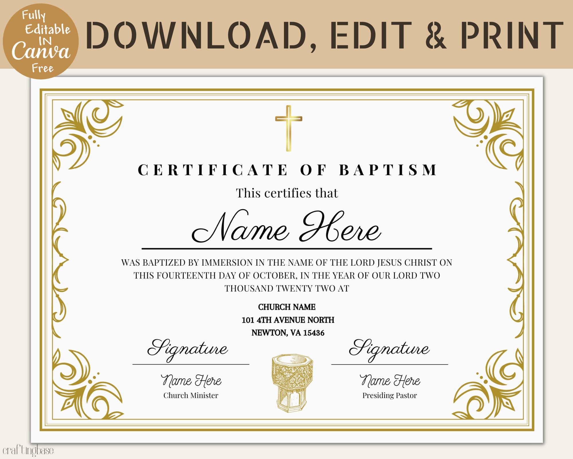 Editable Baptism Christening Catholic Certificate Template