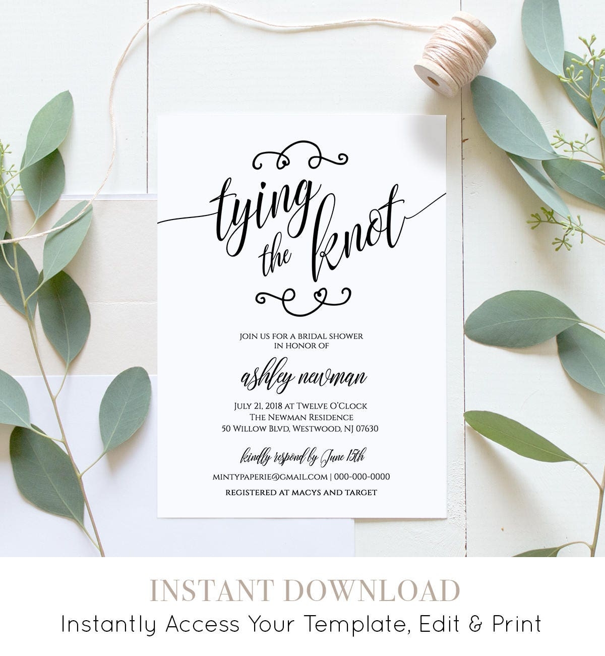 Rustic Bridal Shower Invitation Printable Tying The Knot Wedding