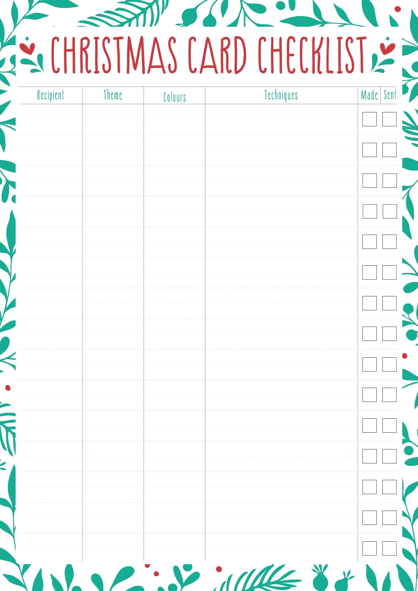 Christmas Card List Printable Checklist INSTANT DOWNLOAD