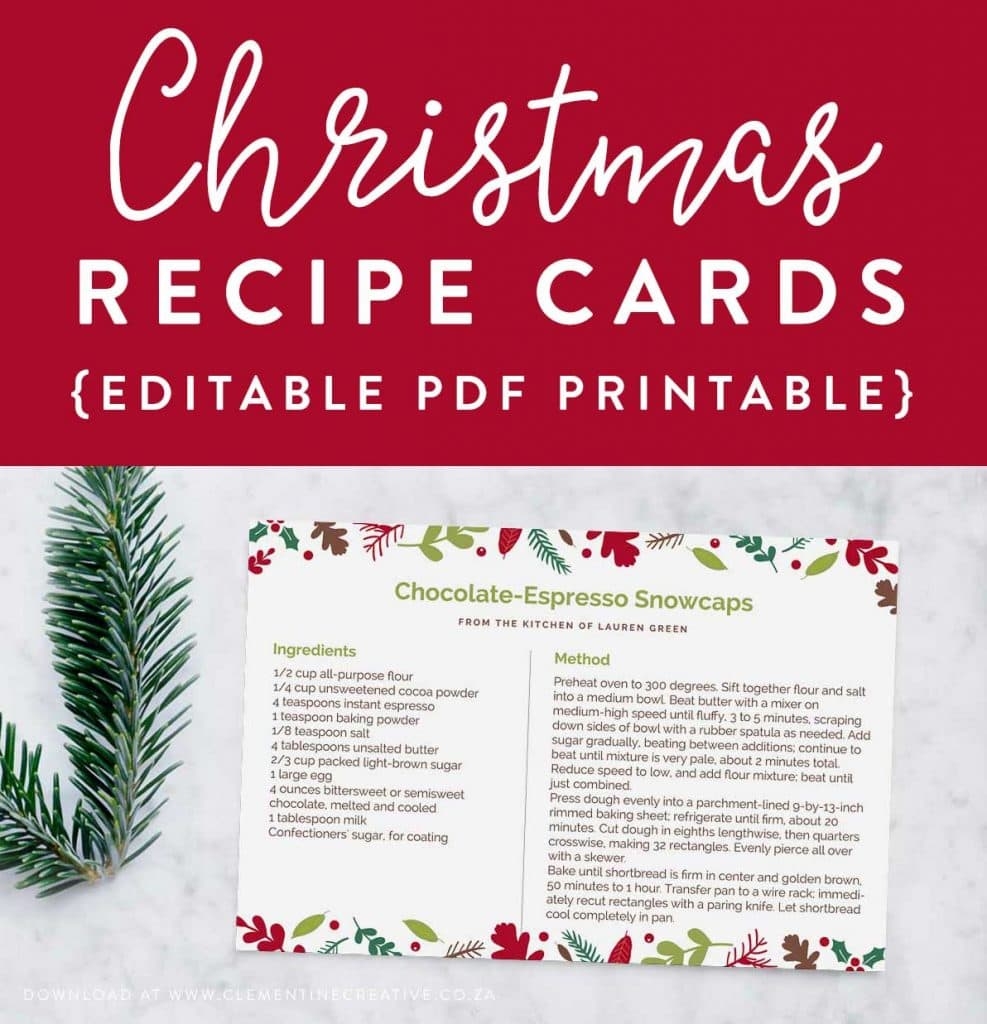 Printable Christmas Recipe Card Editable PDF Template Clementine Creative