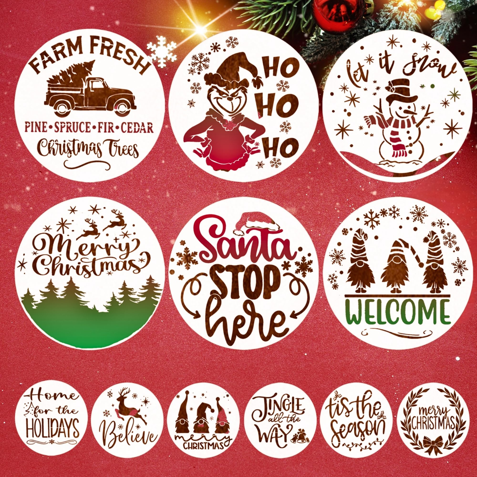 Large Christmas Templates And Stencils For Painting On Wood Round Paint Stencils For Crafts Holiday Stencils For Wood Signs Gnome U0026 Merry