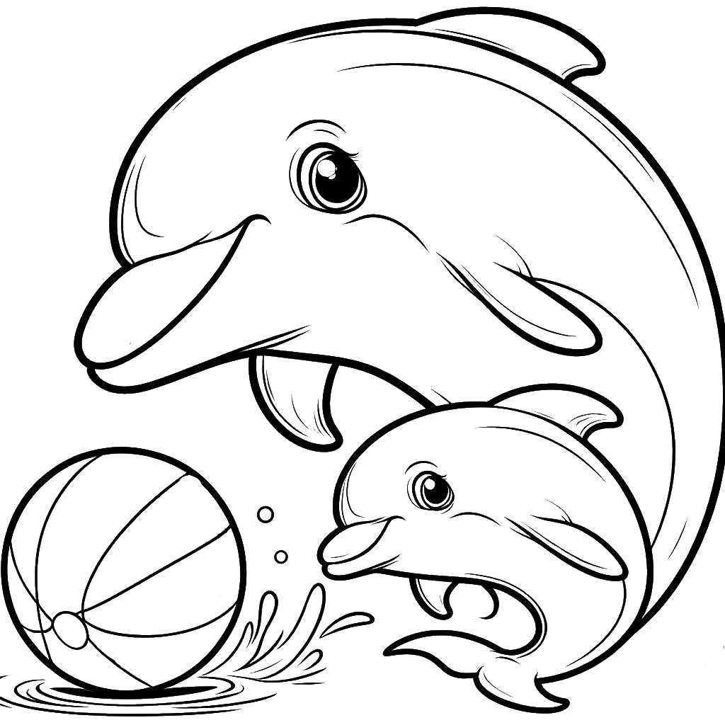 Dolphin Mother And Baby Dolphin Playing With Ball Coloring Page