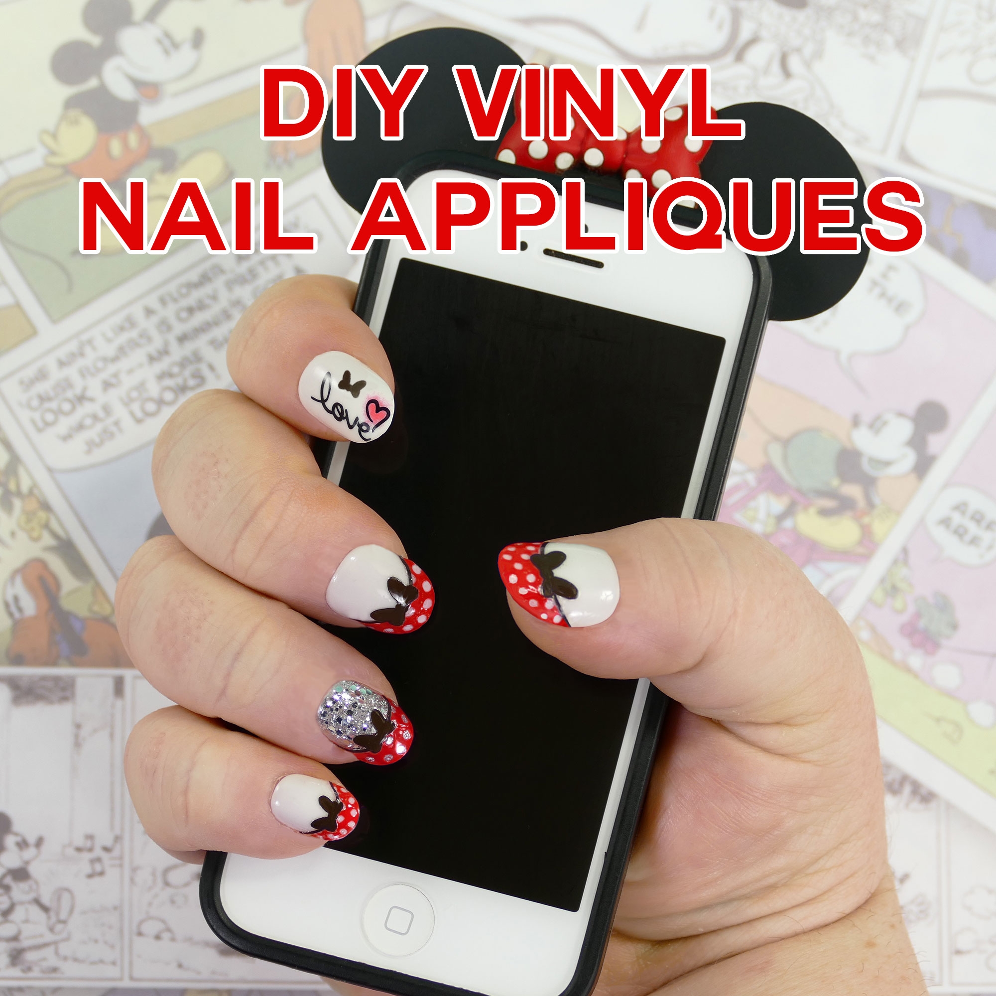 DIY Minnie Mouse Nail Tips Vinyl Appliques Made On The Cricut