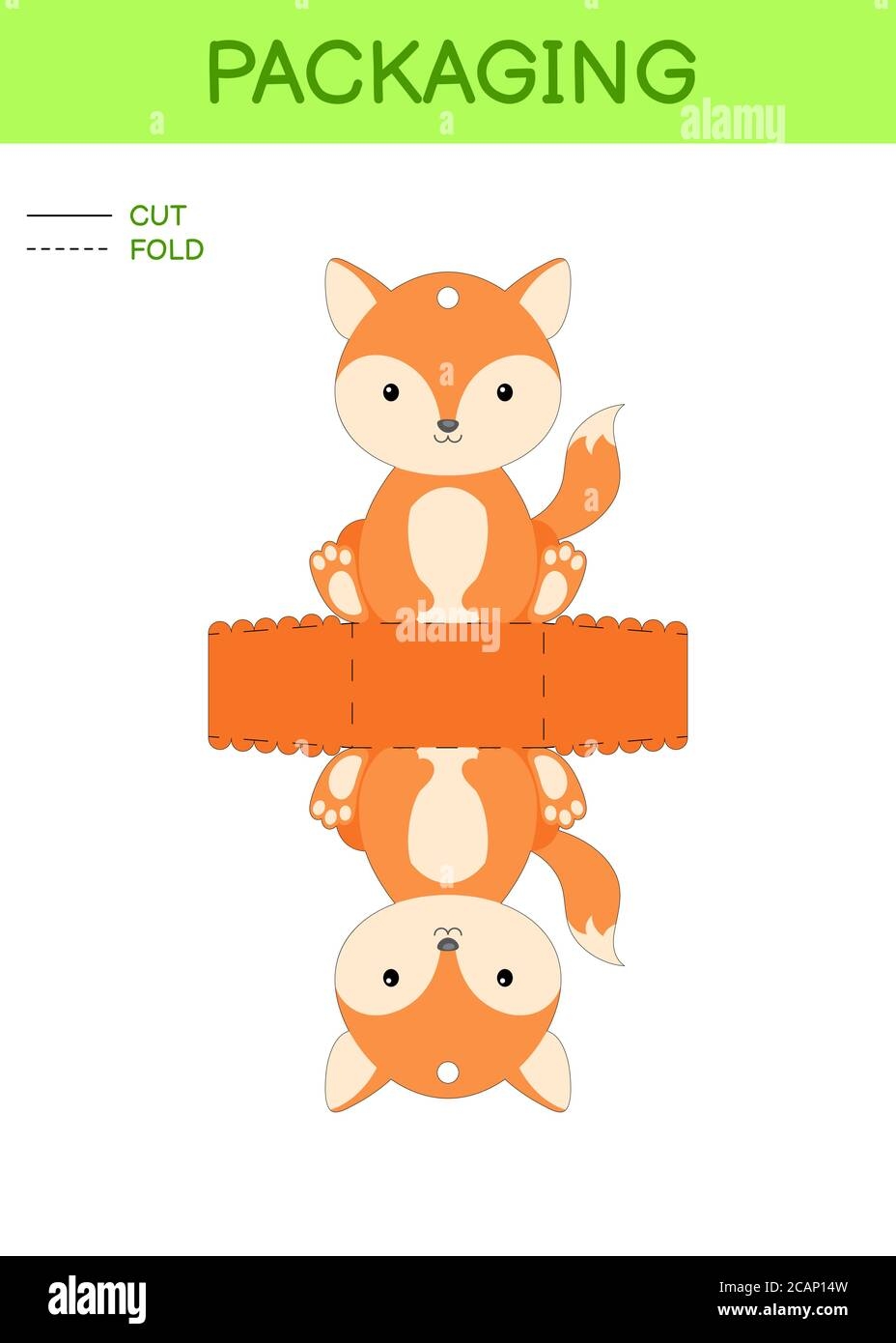 DIY Party Favor Box Die Cut Template Design For Birthdays Baby Showers With Cute Fox For Sweets Candies Small Presents Printable Color Scheme Stock Vector Image Art Alamy