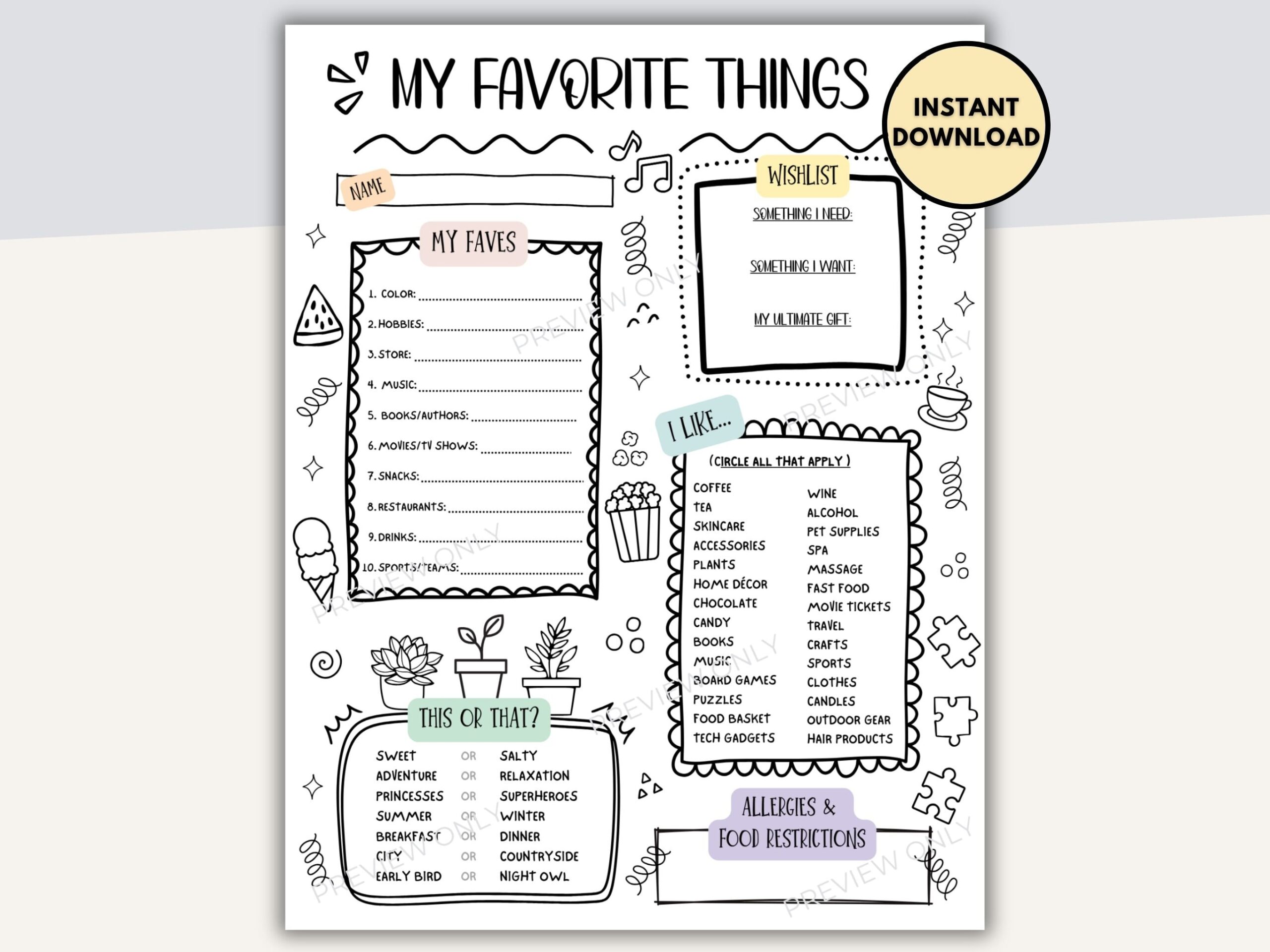 My Favorite Things Survey For Family Employee Favorites Co worker Questionnaire All About Me My Favorite Things List Form Staff Survey Etsy Australia