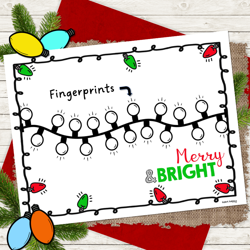 Fingerprint Christmas Lights Printable Template Fingerprint Christmas Art Etsy