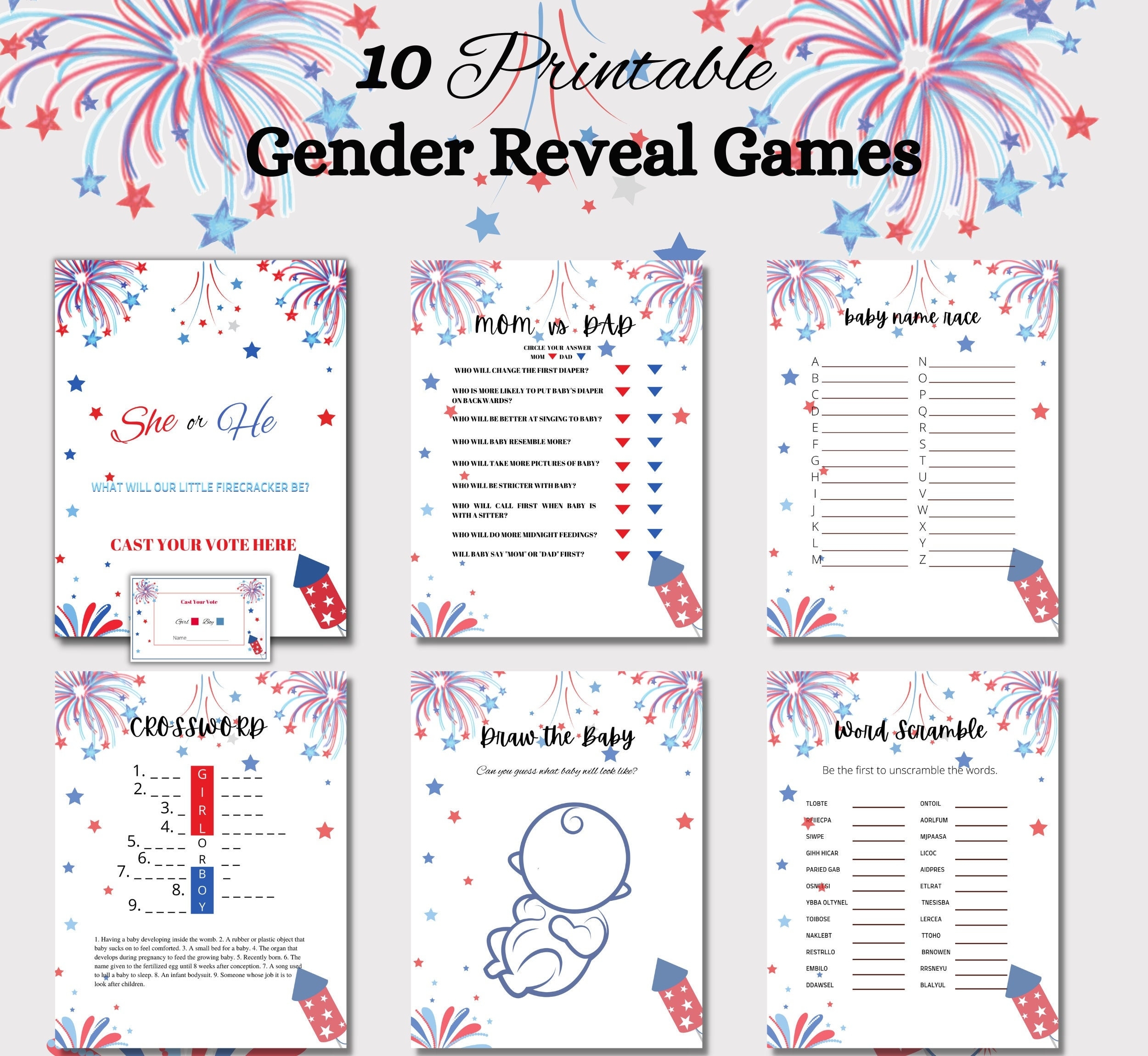 Fourth Of July Themed Printable Gender Reveal Game Bundle Is A Great Way To Entertain The Guest At Your Gender Reveal Party Or Baby Shower Etsy