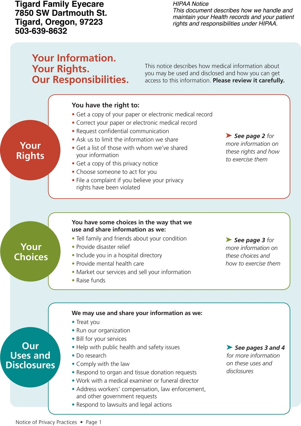 HIPAA Notice Of Privacy Practices Tigard Eyecare