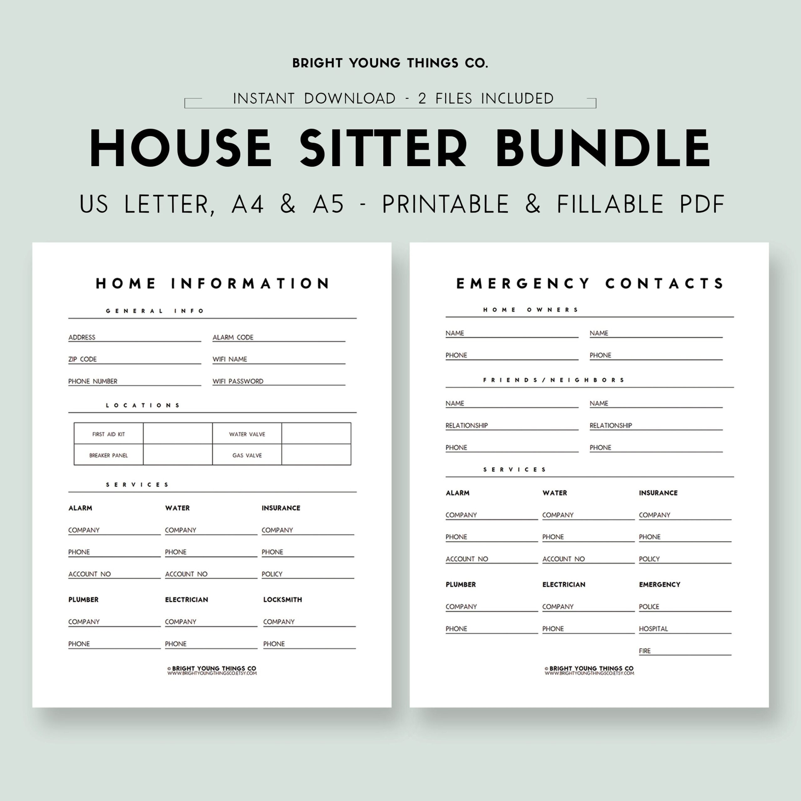 House Sitter Instructions House Sitter Notes Emergency Contact Form Printable Emergency Contact Info House Sitting Guide PDF Template Etsy UK
