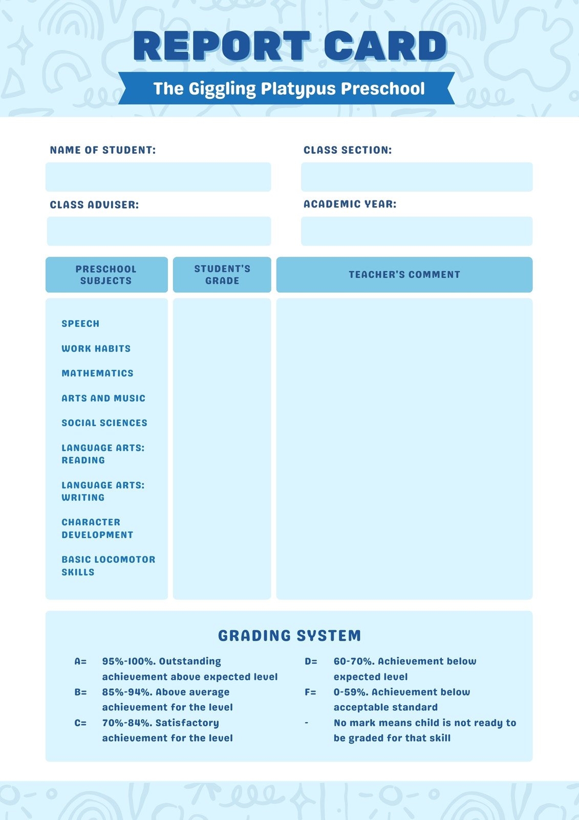 Kindergarten Report Card Template In PSD Illustrator Word Google Docs Pages PDF Download Template