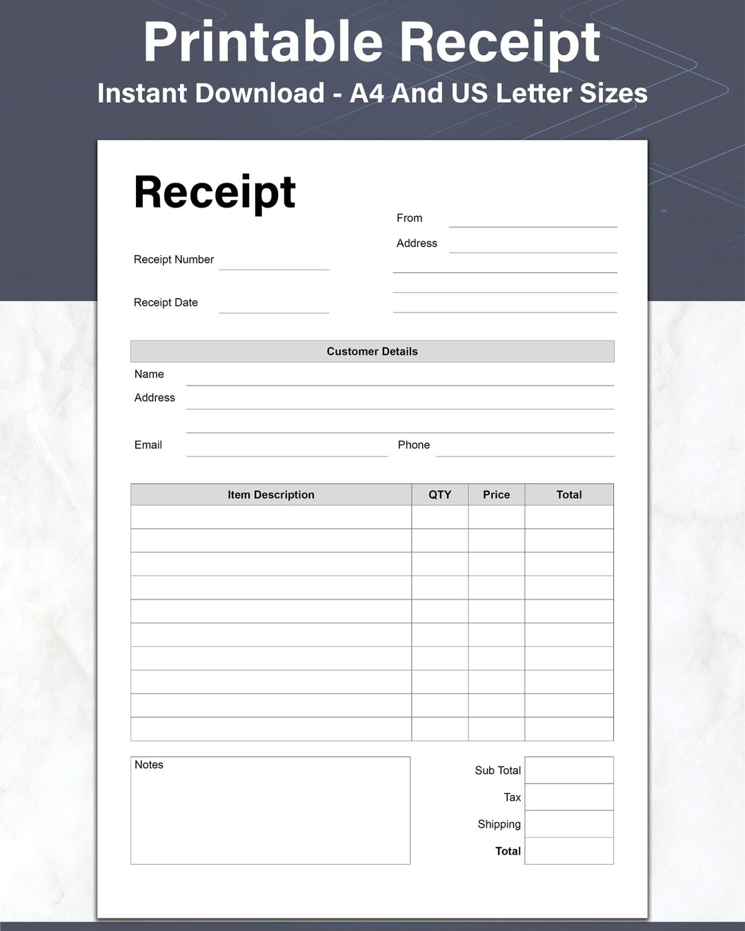 Receipt Template Printable Customer Order Receipt Small Business Sales Receipt Form A4 And US Letter PDF Etsy