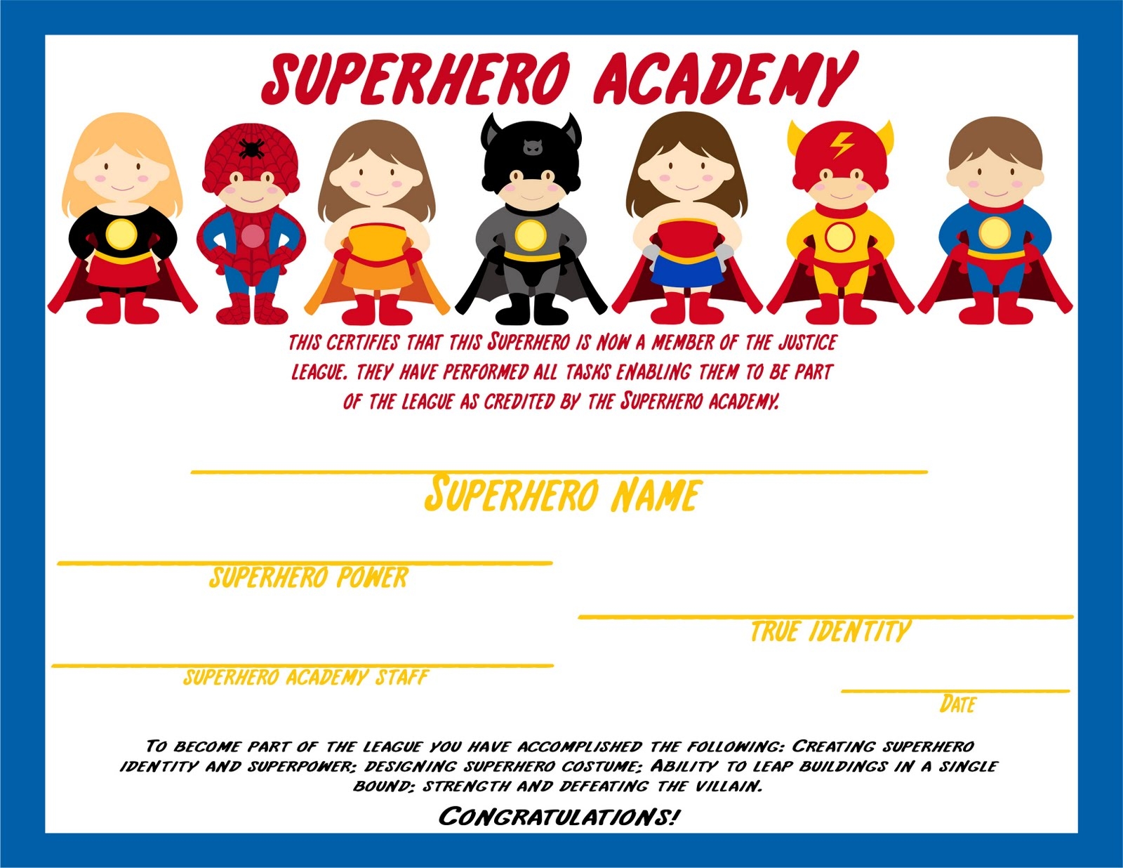 SUPERHERO Training Certificate Superhero Certificate Superhero Party Favor Instant Download Superhero Certificate Printable Superhero 0276 Etsy