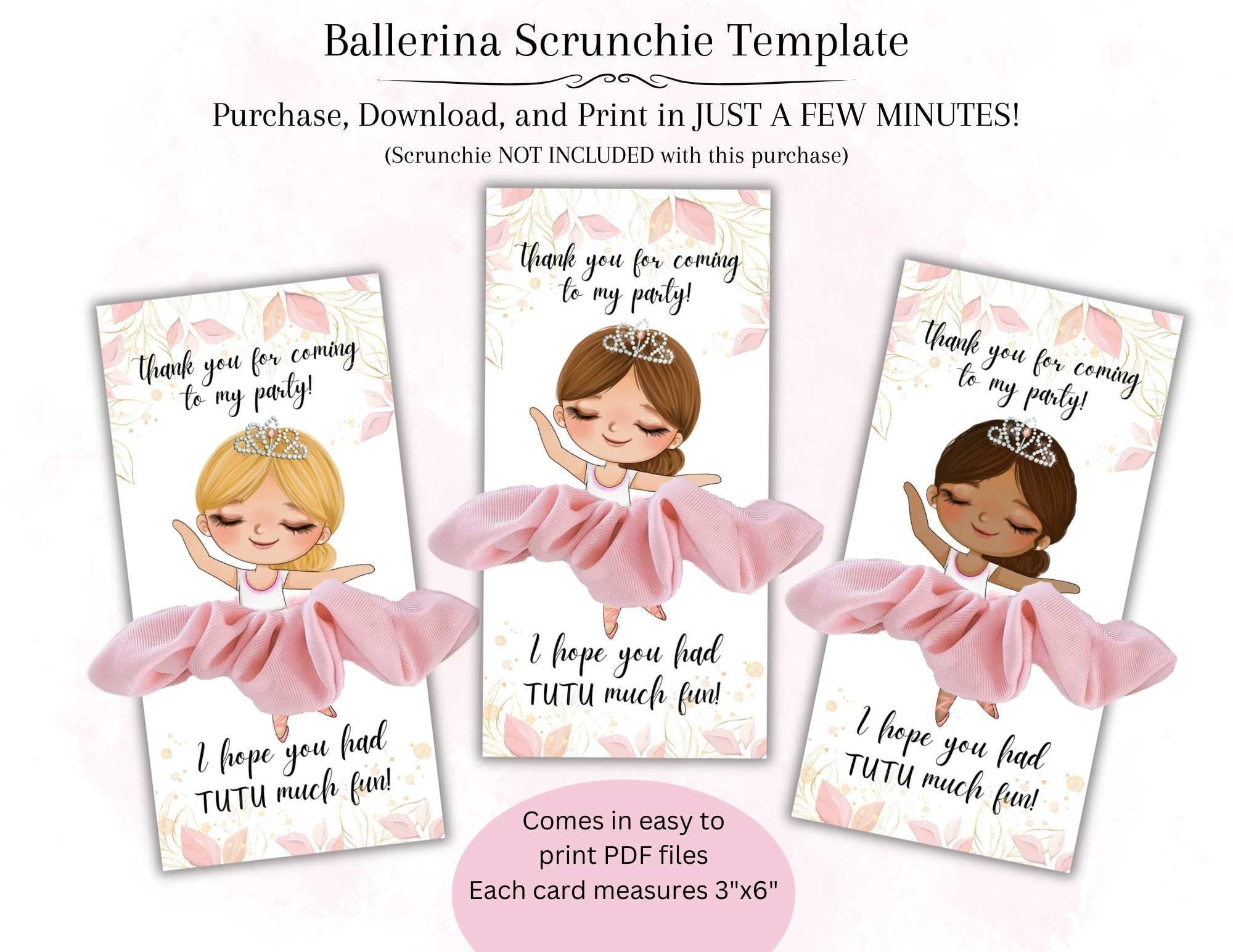 Ballerina Scrunchie Card Template Ballet Dancer Party Favor Ballerina Princess Tag Scrunchie Holder Digital Download Etsy