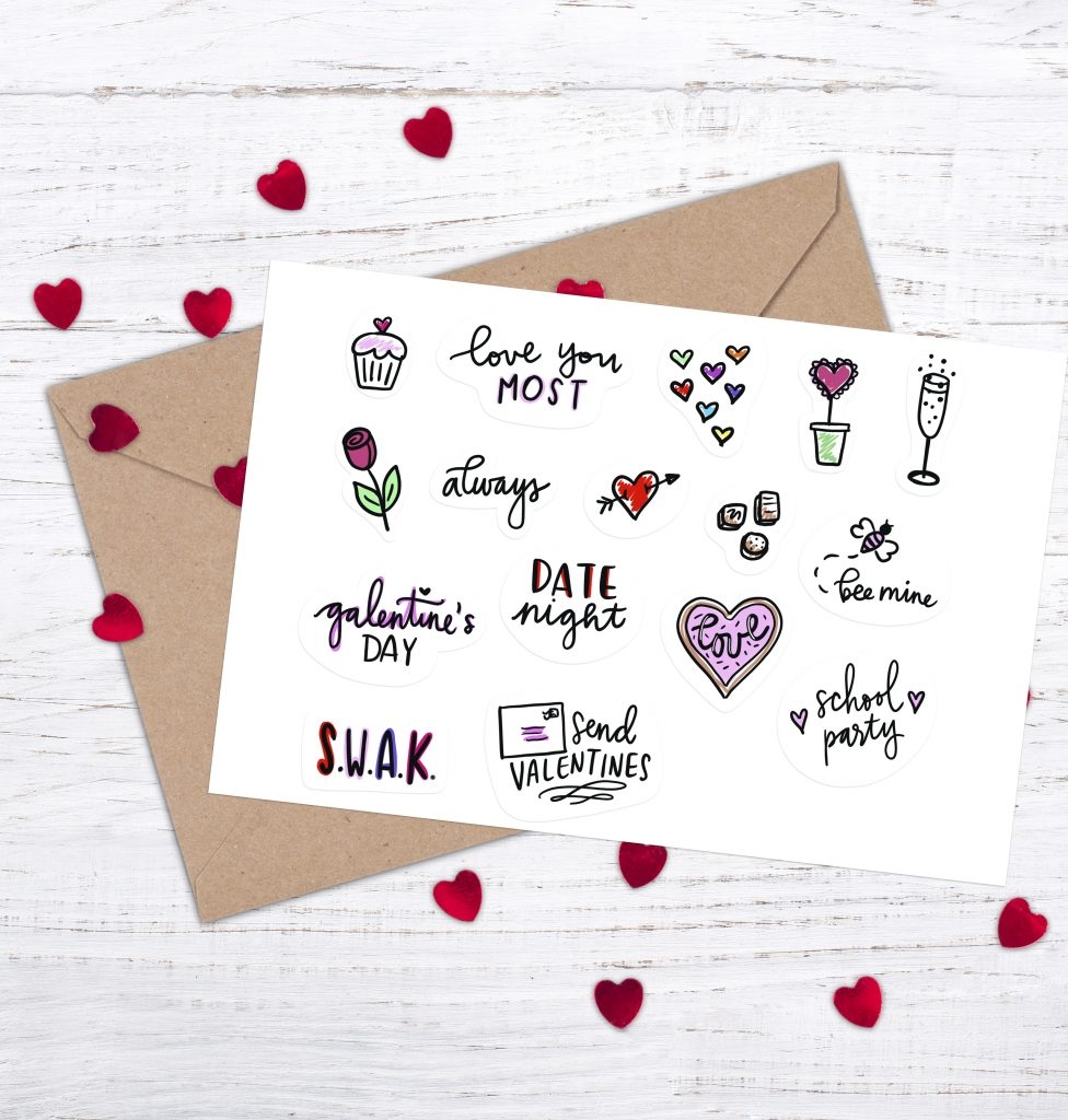 Simply download the sticker sheets, print them out on sticker paper or regular paper and use glue to stick them wherever you please. These stickers are a fun and easy way to add a personal touch to your Valentine’s Day celebrations.