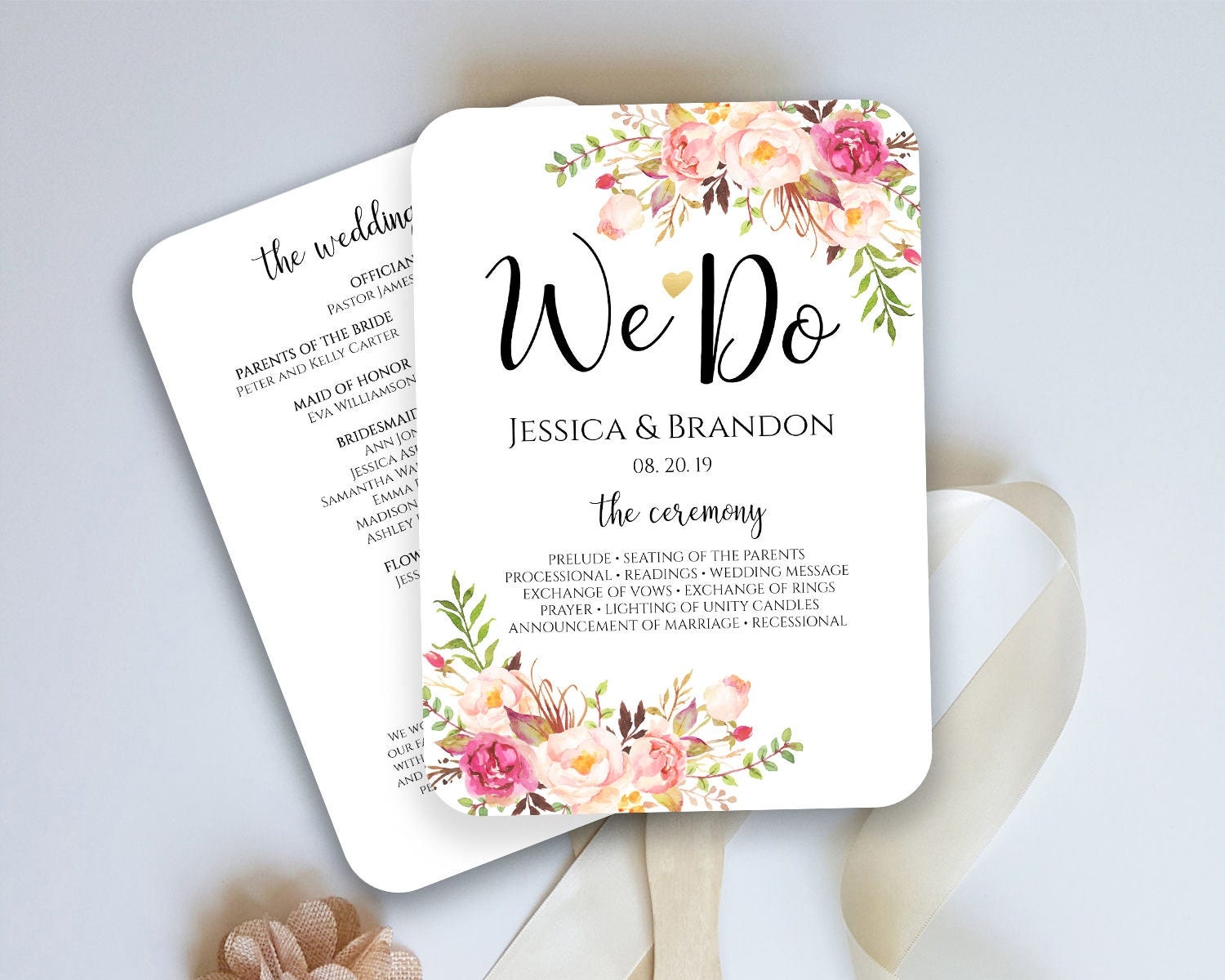 Wedding Program Fan Template Ceremony Program Fan Wedding Fan Program Template Wedding Programs For Wedding Instant Download Pastel Blooms Etsy