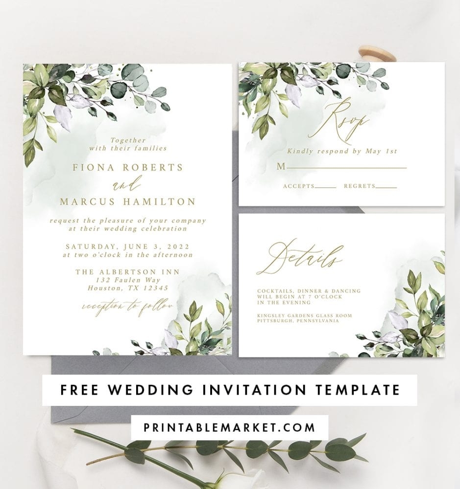 Free Wedding Invitation Template Eucalyptus Green Leaves Instant Download Printables Instant Download Printables