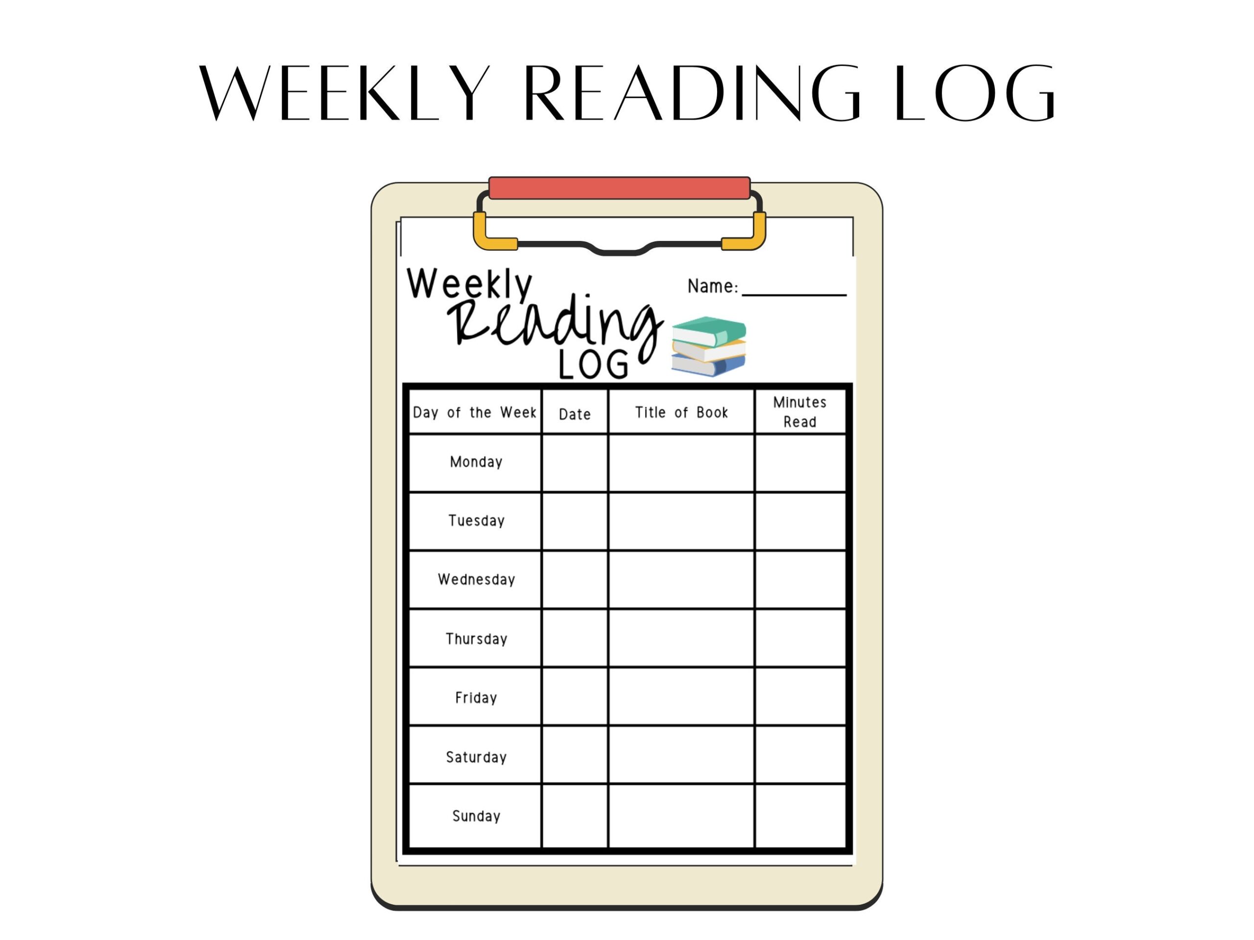 Weekly Reading Log Reading Worksheet Reading Log Printable Etsy