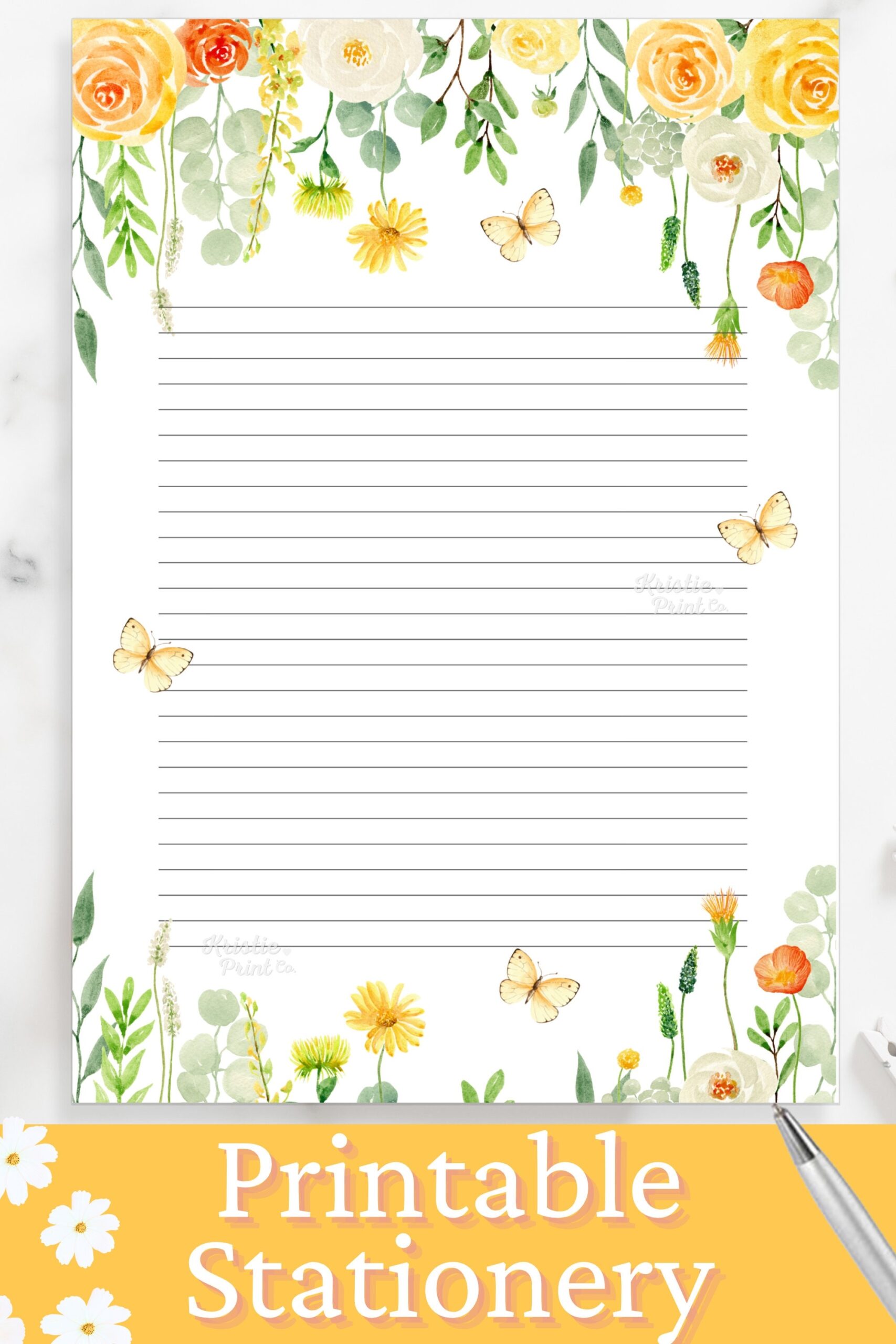 Yellow Floral Stationery Floral Printable Stationery Paper