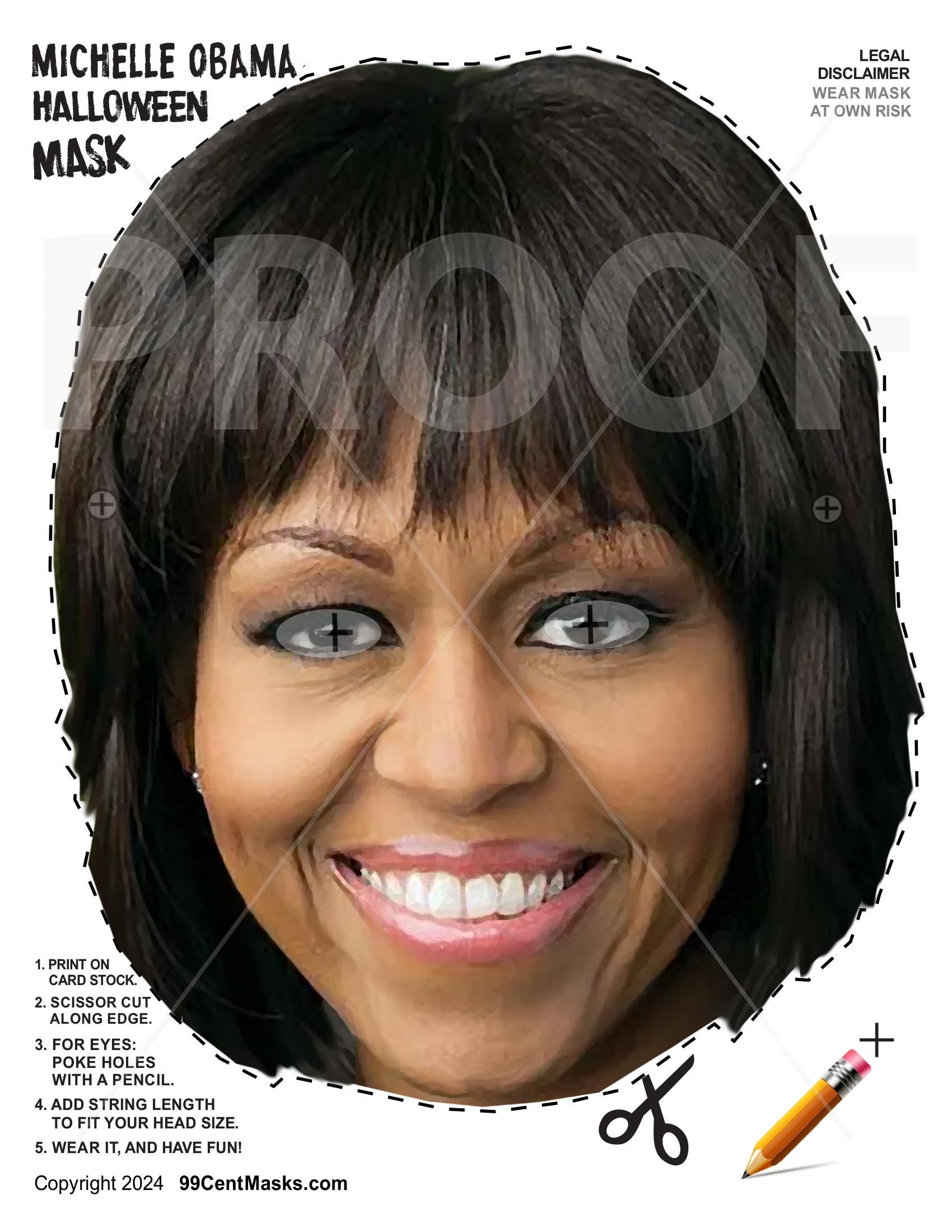 Printable Halloween Mask MICHELE OBAMA Design Download And Print Fun And Easy Halloween Mask 99 Cent Download Costume Party Mask Etsy