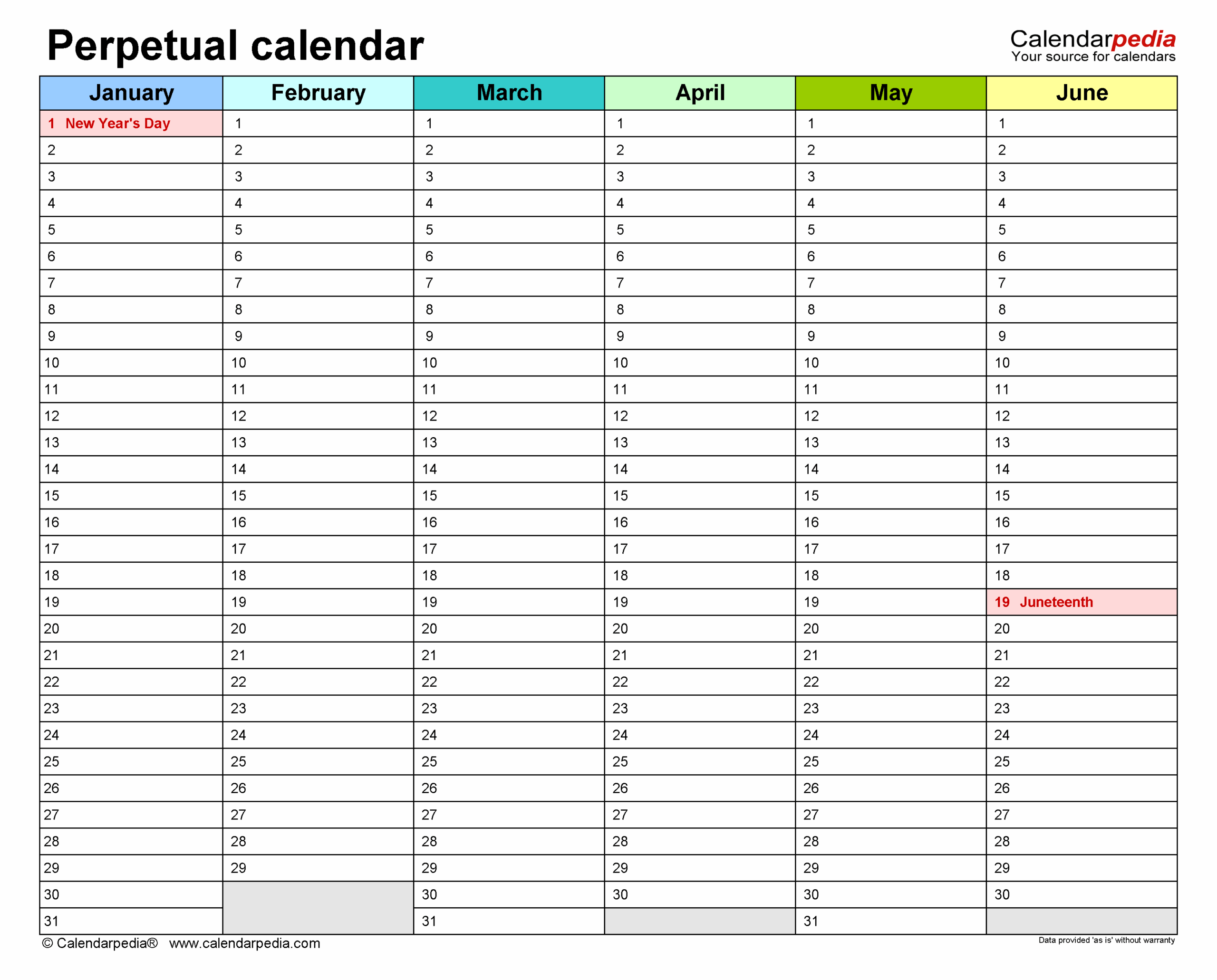 Perpetual Calendars Free Printable PDF Templates