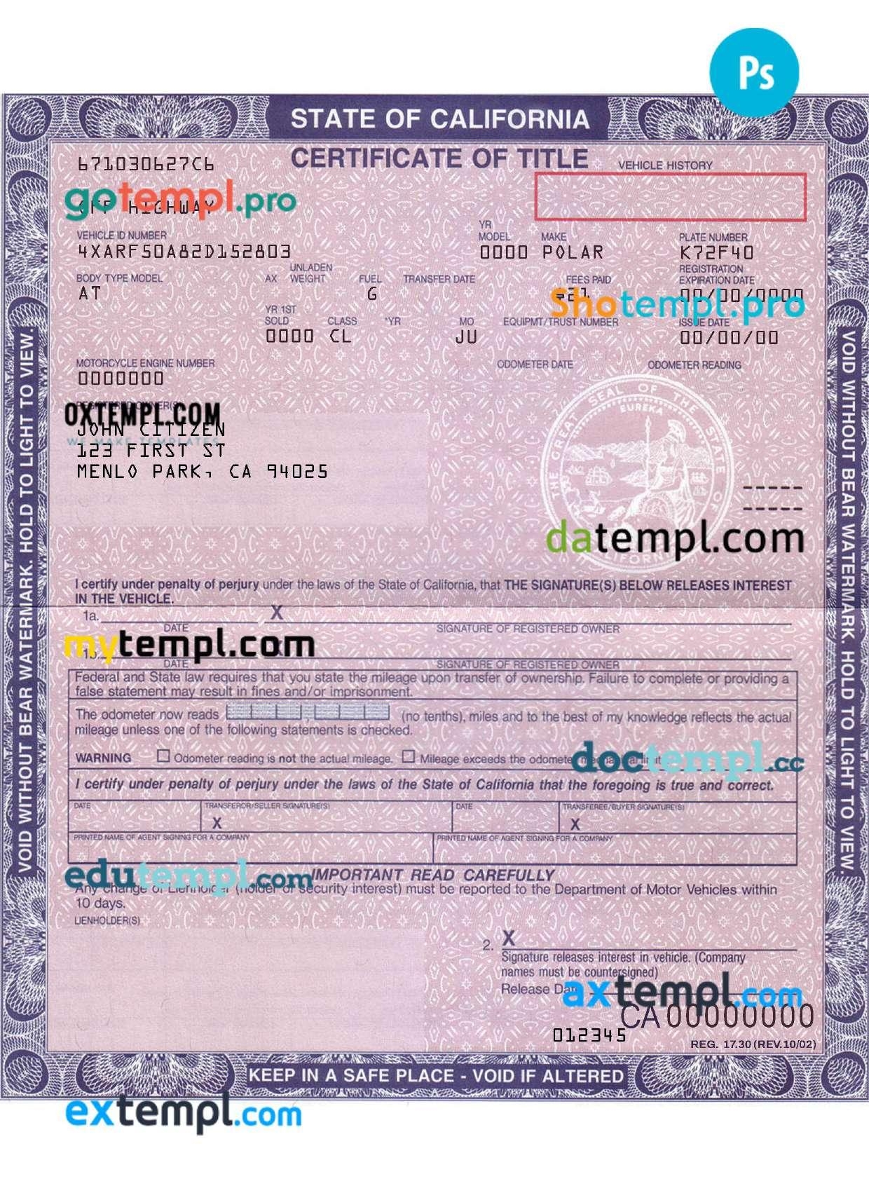 California Certificate Of Title Of A Vehicle car Title Template In PSD Format Fully Editable By Axxtemplis Issuu