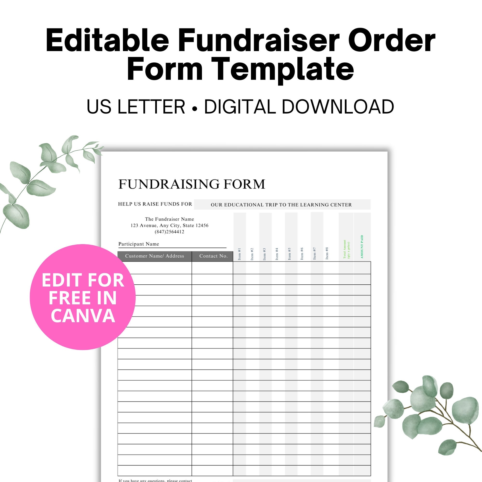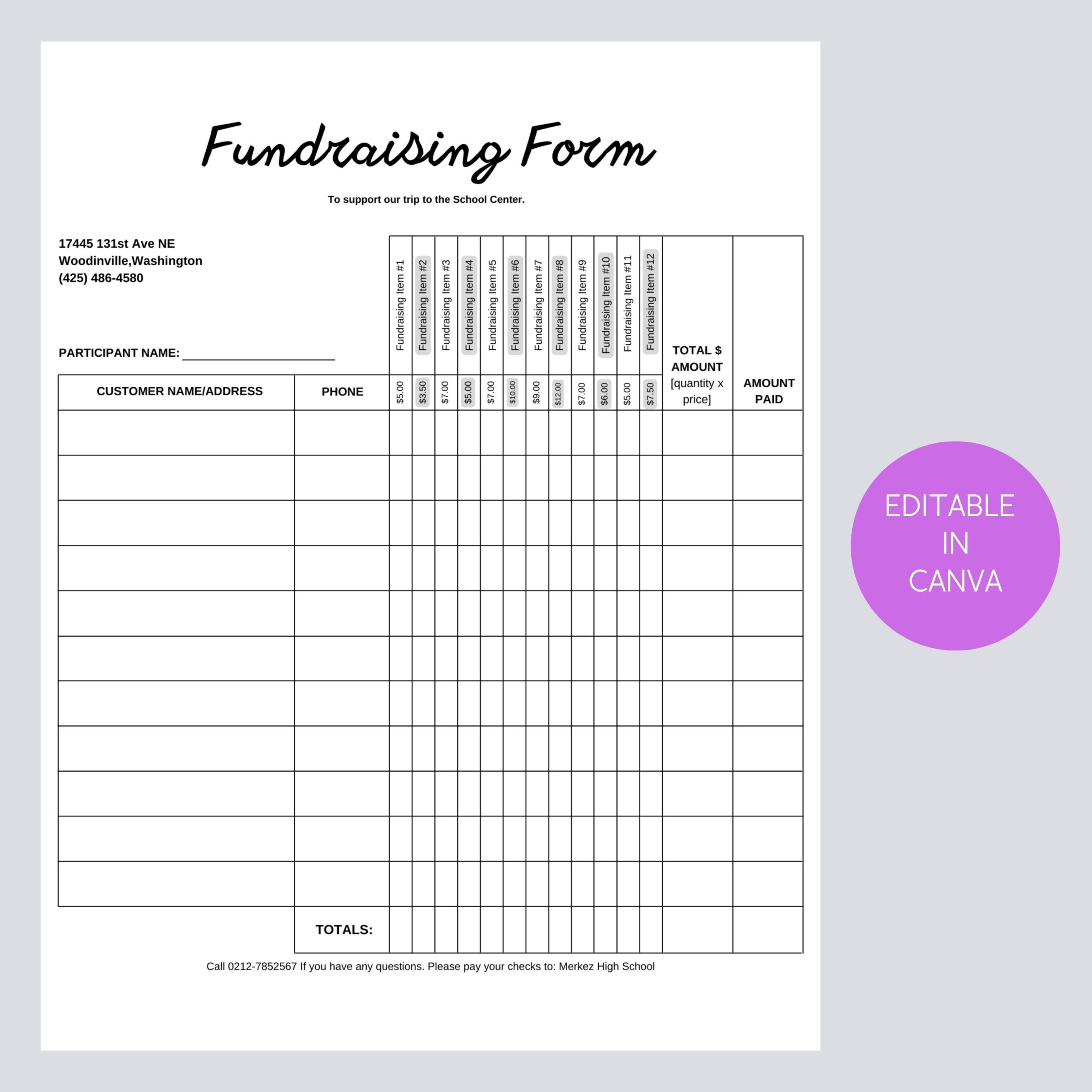 EDITABLE FUNDRAISER FORM Printable Fundraising Order Form School