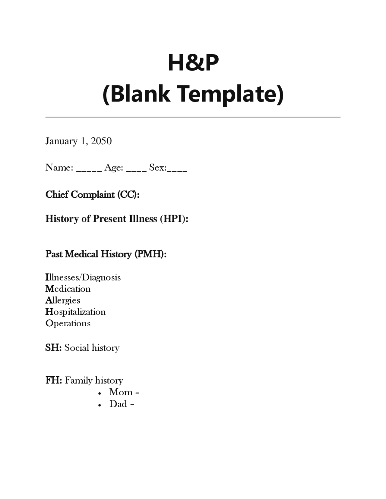 Are you looking for a Printable Blank H&P Template Free that you can use for your medical practice or personal use? Look no further! We have got you covered with a high-quality template that you can download and print for free.
