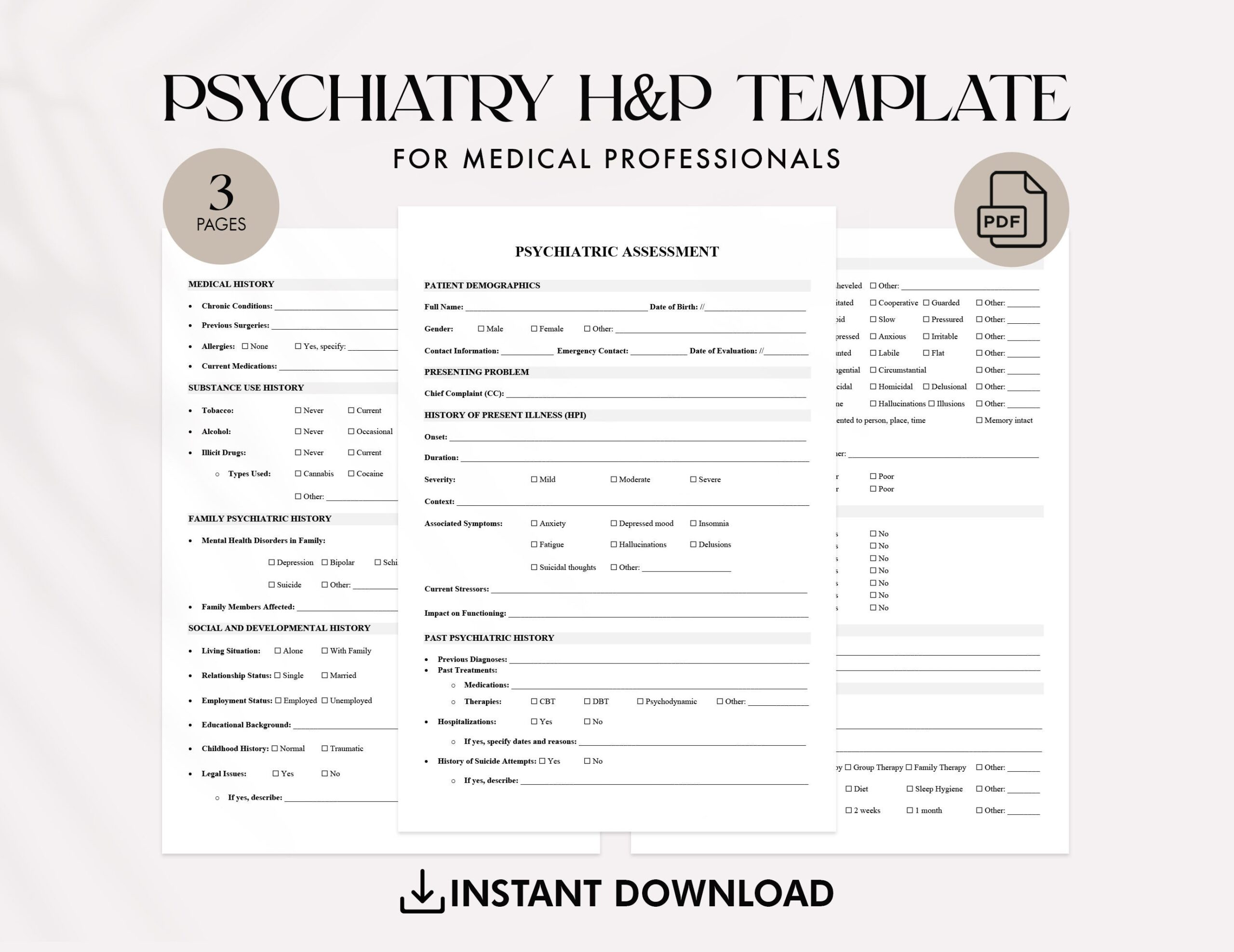 DIGITAL Download Printable Essential Hu0026P Clinical Template For Medical Students Pas Or Nurses History Etsy