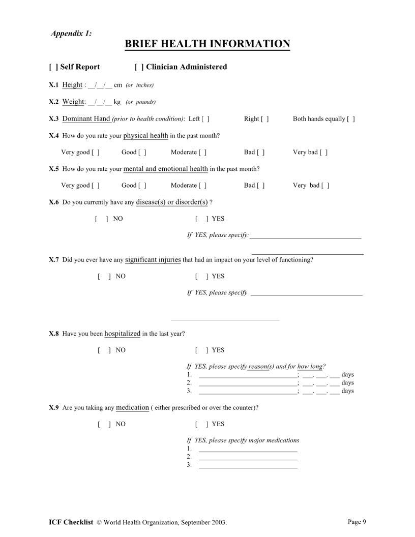 Icf Checklist Fill Out Printable PDF Forms Online