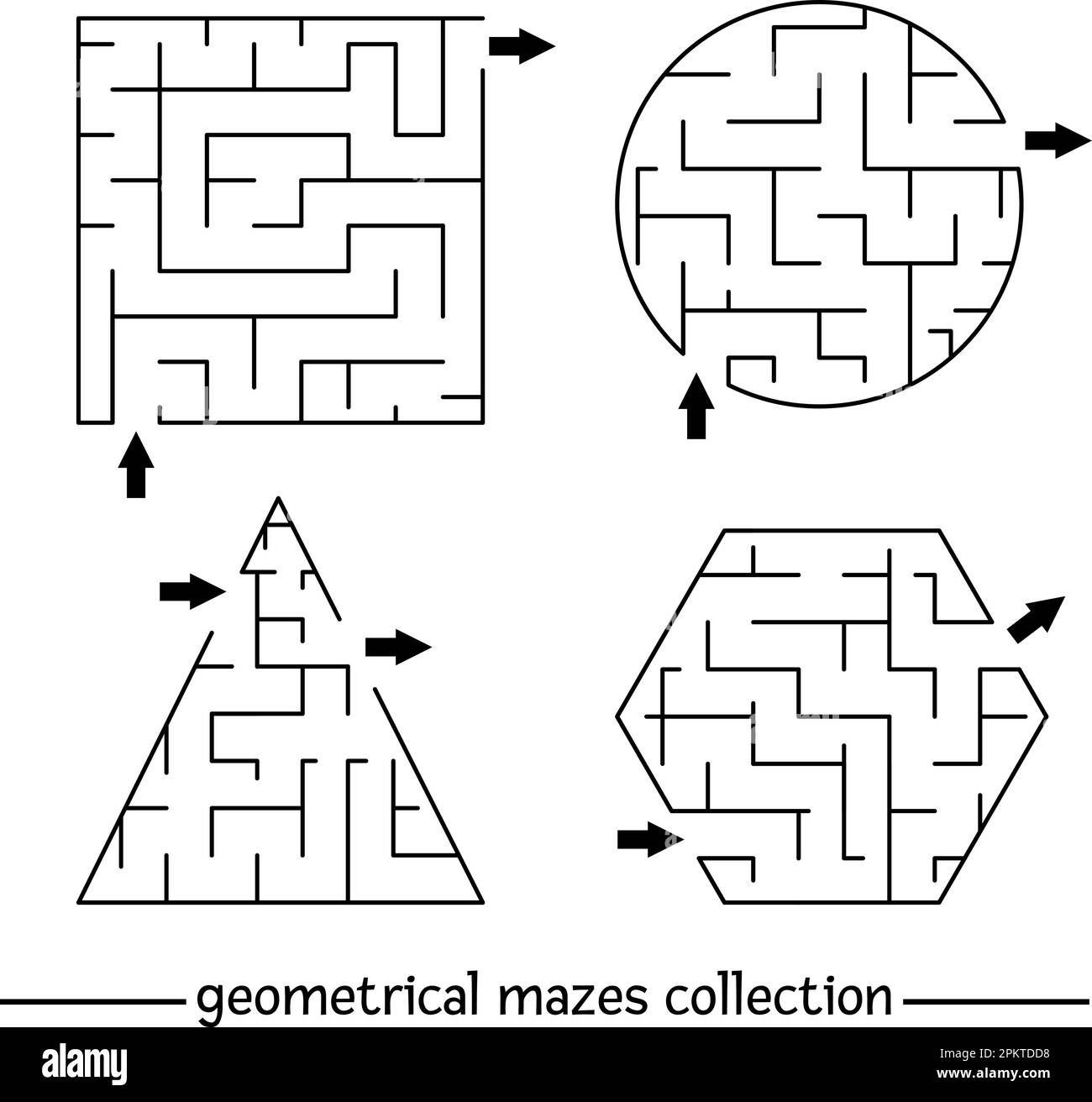 Vector Maze Template Set Blank Black And White Square Round Polygon Triangle Shaped Geometrical Labyrinth Collection Preschool Printable Educatio Stock Vector Image Art Alamy