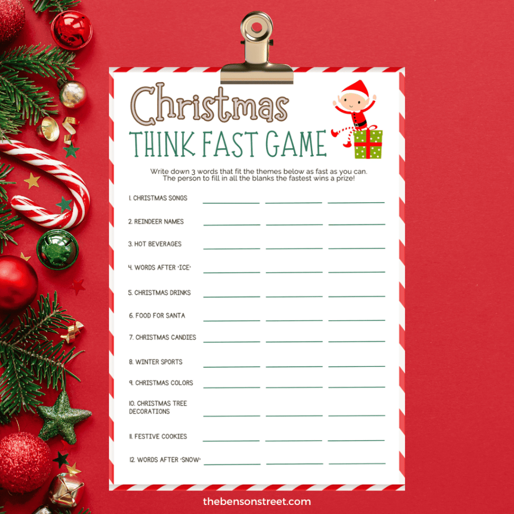 Printable Christmas Think Fast Game A Free Holiday Game The Worksheets Library