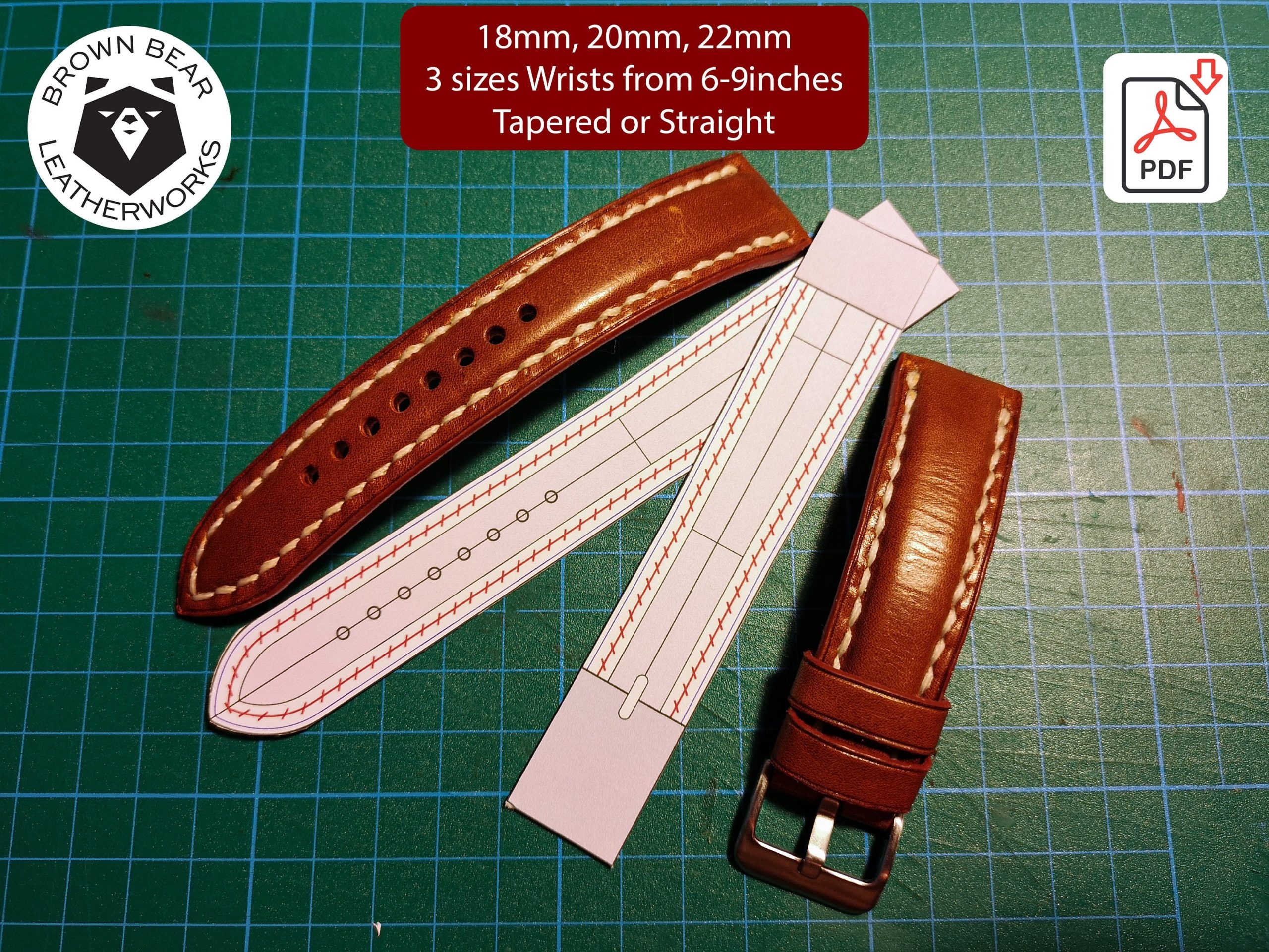 18 Printable Watch Strap Templates 18 20 22mm 3 Sizes Tapered