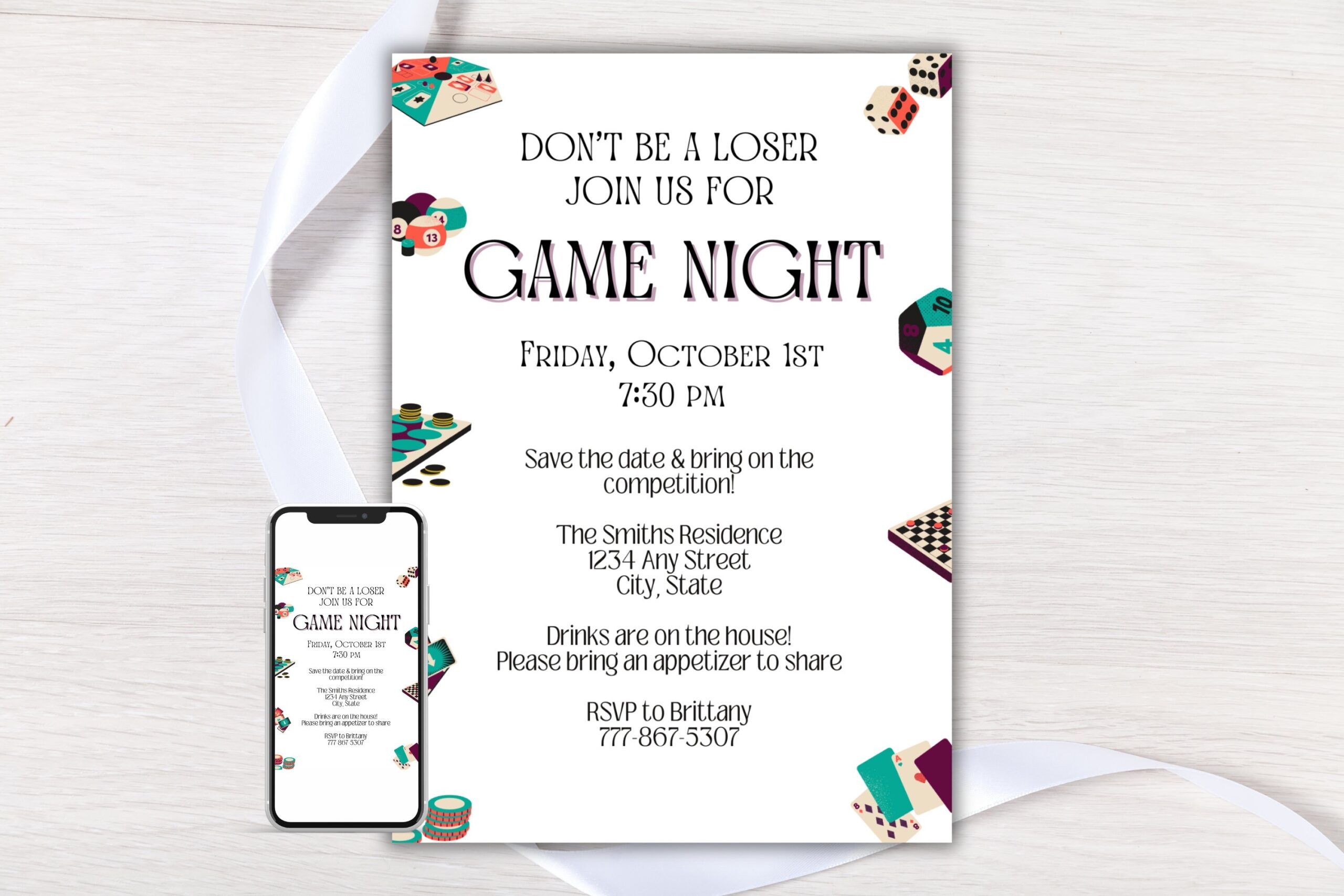 Game Night Fun Game Night Invitation Board Game Card Game Girls Night Adults Night Digital Printable Invite Template For Game Night Etsy