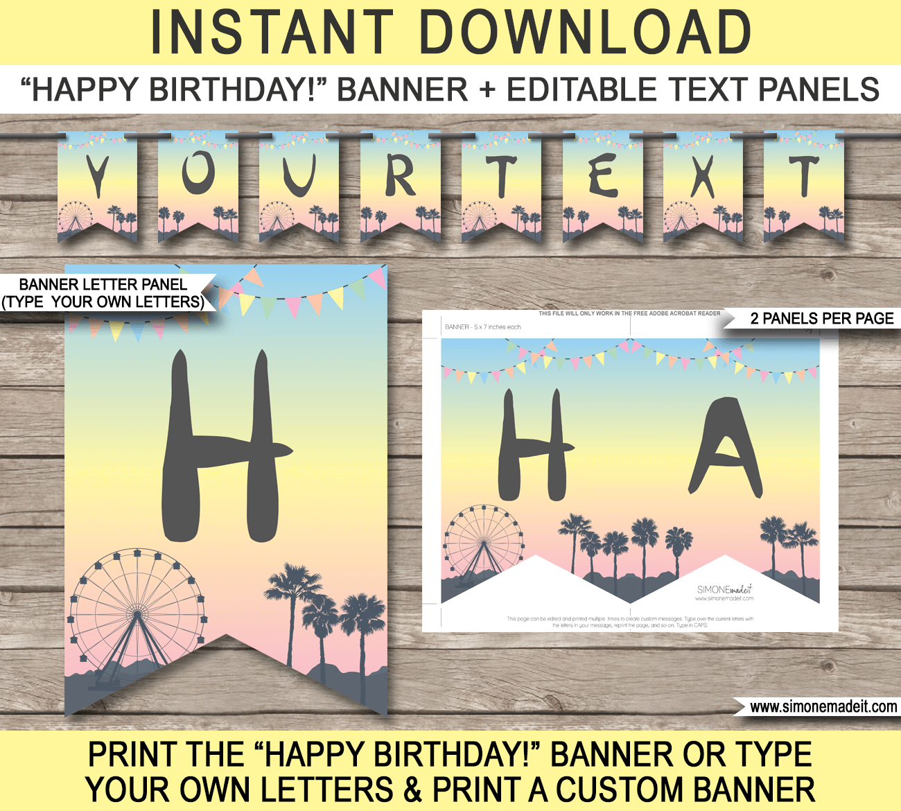 Coachella Themed Party Pennant Banner Template Printable Decorations