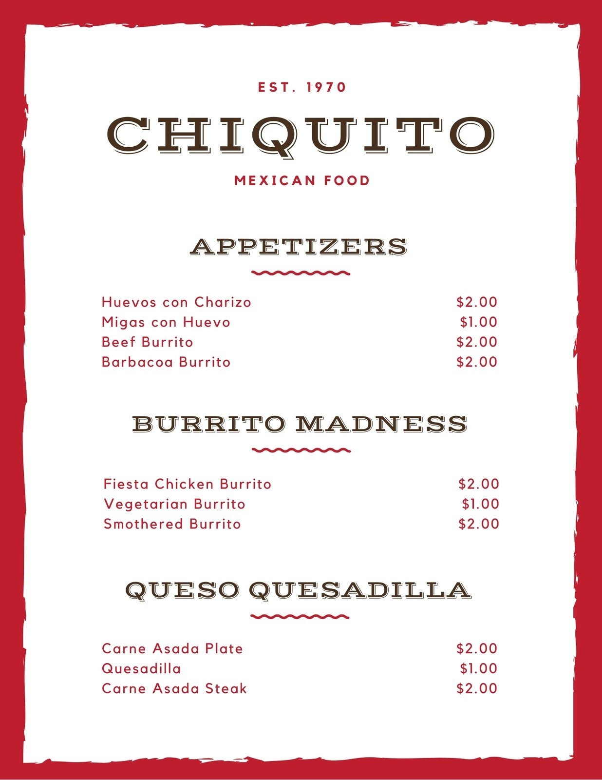 Page 2 Free Printable And Customizable Mexican Menu Templates